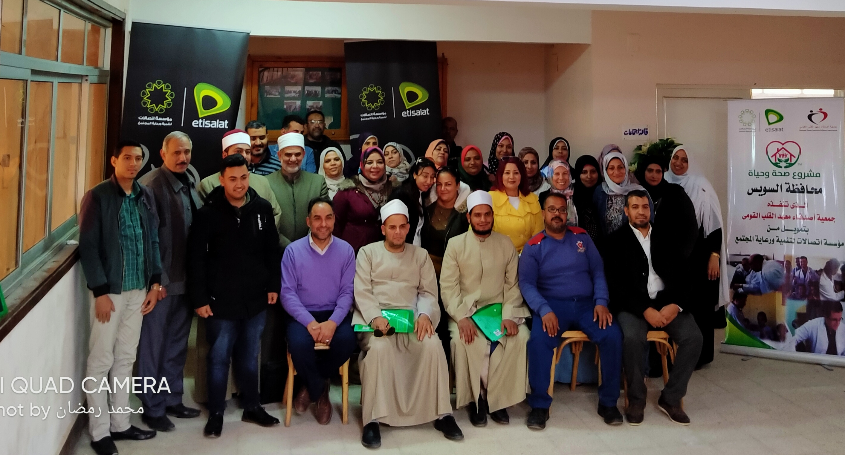 - نفيذ مشروع (صحه وحياه ) مع مؤسسة اتصالات لتنمية ورعاية المجتمع والذى يهدف الى لتحسين الظروف الصحية للقري والمناطق الاكثر احتياجا بمحافظتي الإسماعيلية والسويس، من خلال رفع الوعي الصحي في المجتمع بطرق الوقاية من لامراض القلب، والارتقاء بمستوي مقدمي الخدمات الصحية لتقديم خدمة طبية متخصصه لمرضى القلب وتم تقديم خدمات صحية مباشرة من خلال القوافل الطيبة (خاصة قوافل امراض القلب) - وكانت من نتائج المشروع كما يلى : - • تنفيذ قافلة طبية أولى على مستوى محافظة السويس حيث تم الكشف الطبى على عدد 477 حالة تم عمل اكثر من 100 رسم قلب وموجات صوتيه وتم اكتشاف عدد 48 حالة تعانى من مشاكل بالقلب وتم تحويل حالة طوارئ لاستقبال معهد القلب القومى . • تم الكشف الطبى على عدد 417 حالة من مرضى القلب المزمن بمحافظتى السويس والاسماعيلية بواقع (292 حالة بالسويس – 125 حالة بالاسماعيلية ) تم اكتشاف عدد 145 حالة ايجابية ( 114 حالة بالسويس – 31 حالة بالاسماعيلية ) . • تم عمل عدد 11 قافلة مدرسية تم الكشف الطبى على عدد 5284 طالب وطالبة وتم عمل موجات صوتيه 1050 حالة مشتبه • تم توزيع عدد 200 شنطة وسائل وقاية للاطباء بمحافظتى السويس والاسماعيلية من خطر الاصابة بفيروس كورونا . • توزيع عدد 4035 مطوية و تم توزيع عدد 2475 مسطرة وتم توزيع عدد 2475 جدول حصص عليها رسائل على طلبة المدارس توعية من خطر الاصابة بفايروس كورونا .